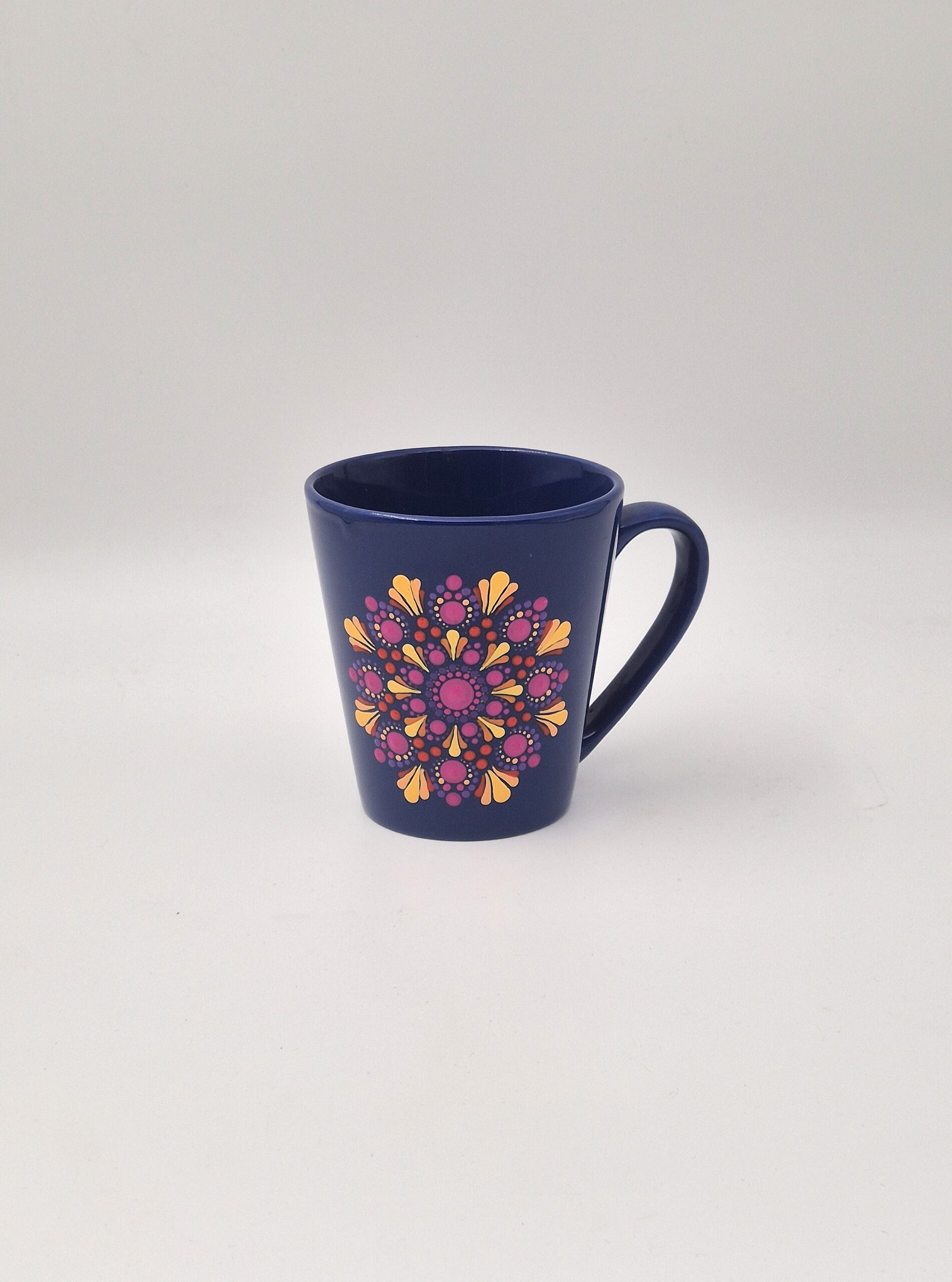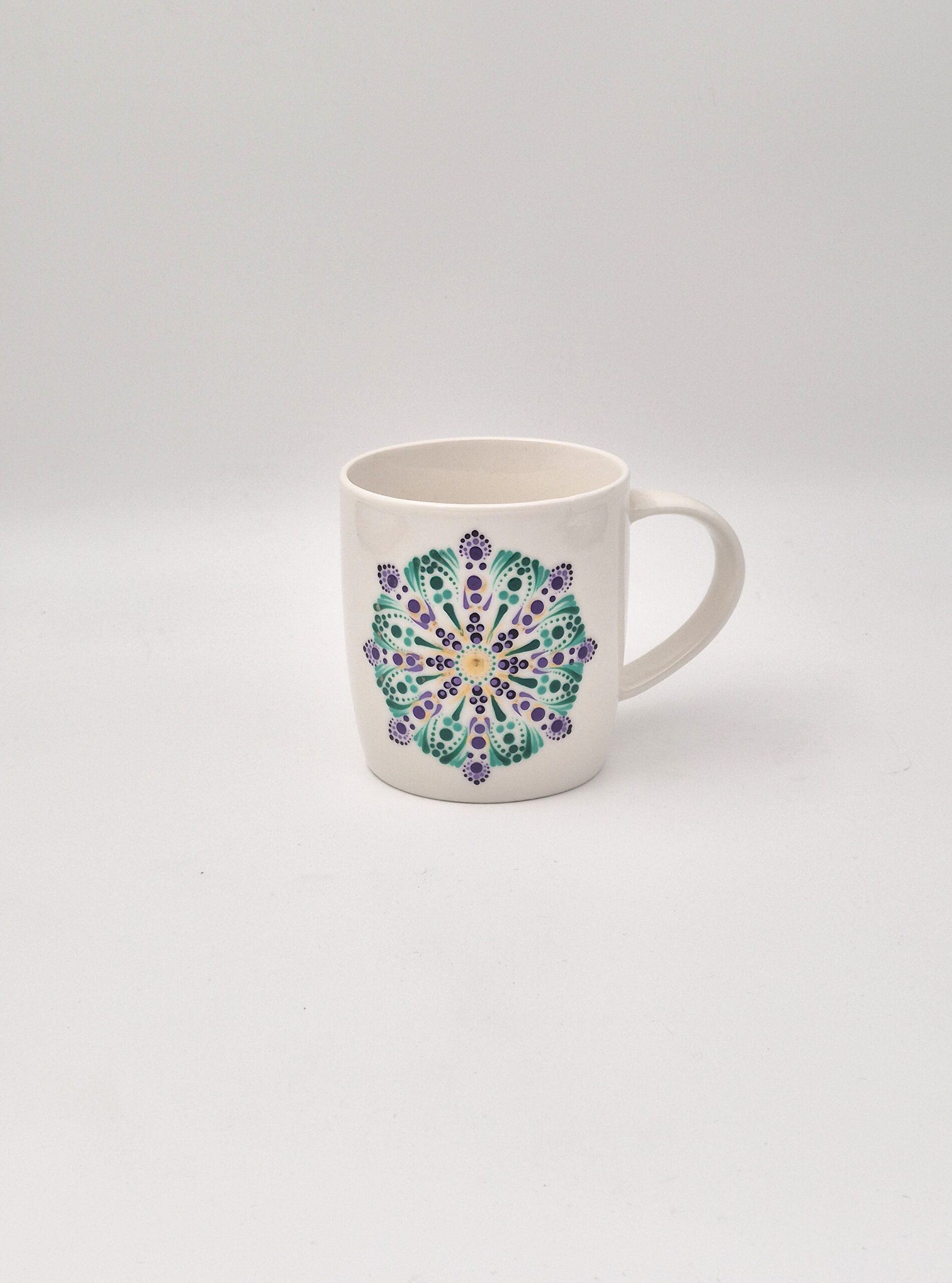 Vsaka skodelica z mandalo je unikatna zgodba, ročno ustvarjena z ljubeznijo in pozornostjo. Mandale, naslikane v tehniki dot painting, nosijo poseben pomen – vzorci in barve so izbrane intuitivno, da v sebi prebudijo občutek miru, harmonije in radosti.