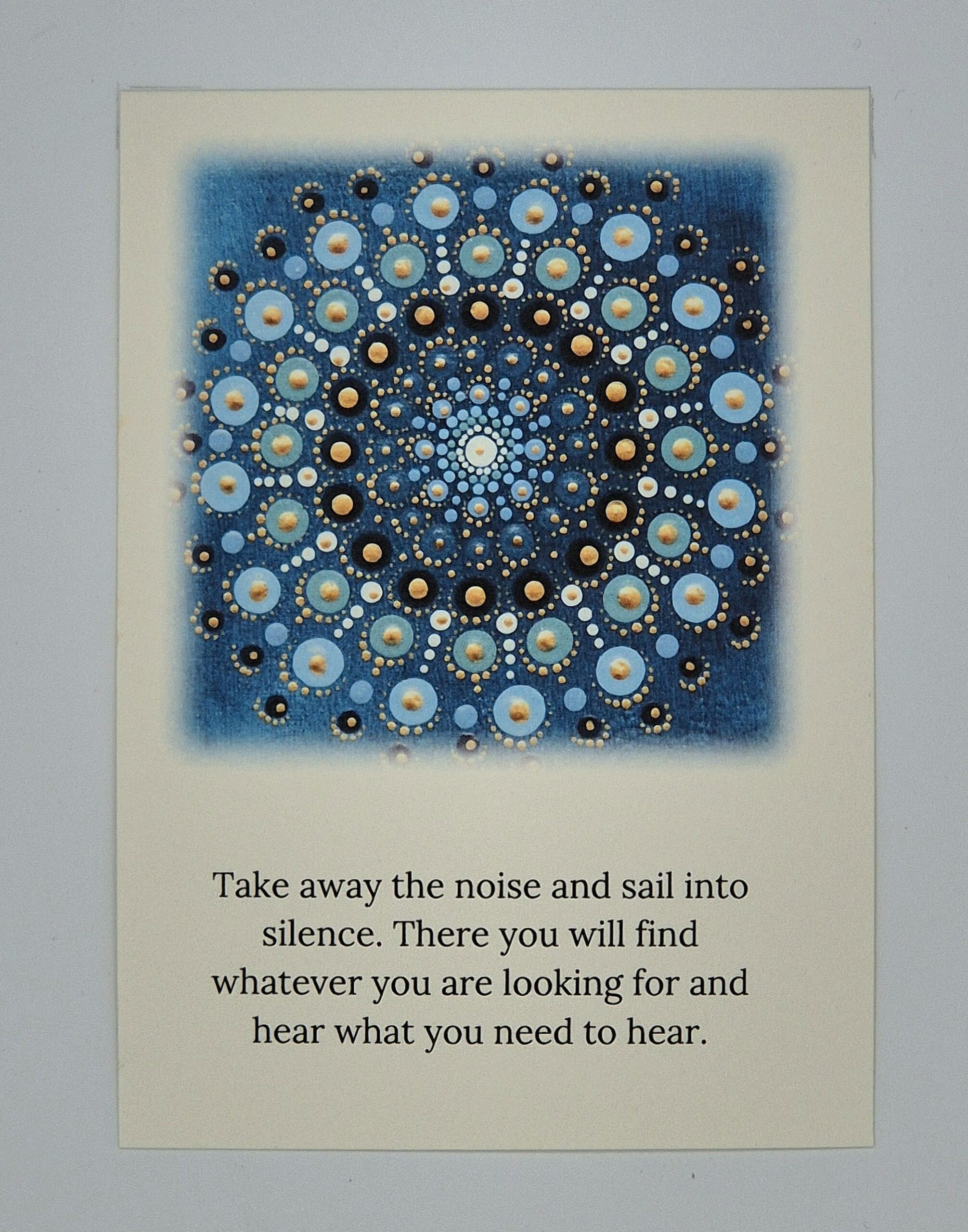 Mandale so ročno naslikane v tehniki pointilizem in ustvarjajo mozaik energije in ravnovesja, obogatene so z numerološkim zapisom in posebnim namenom. Umetniške kreacije nežno prenašajo sporočilo in energijo, zato so primerne za polepšanje vašega doma ali kot darilo z globokim pomenom. Oblike, barve in besede imajo svojo frekvenco, s katero lahko vplivamo na naše boljše počutje, razpoloženje, energijo prostora…