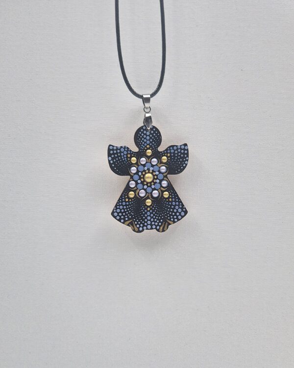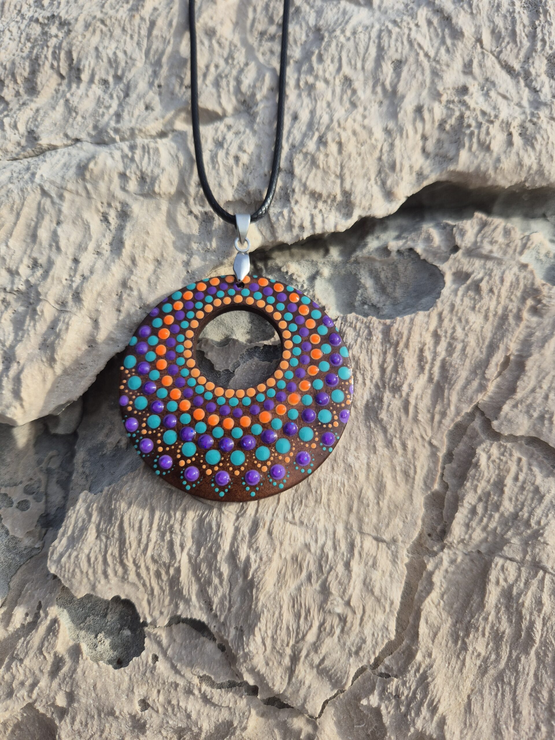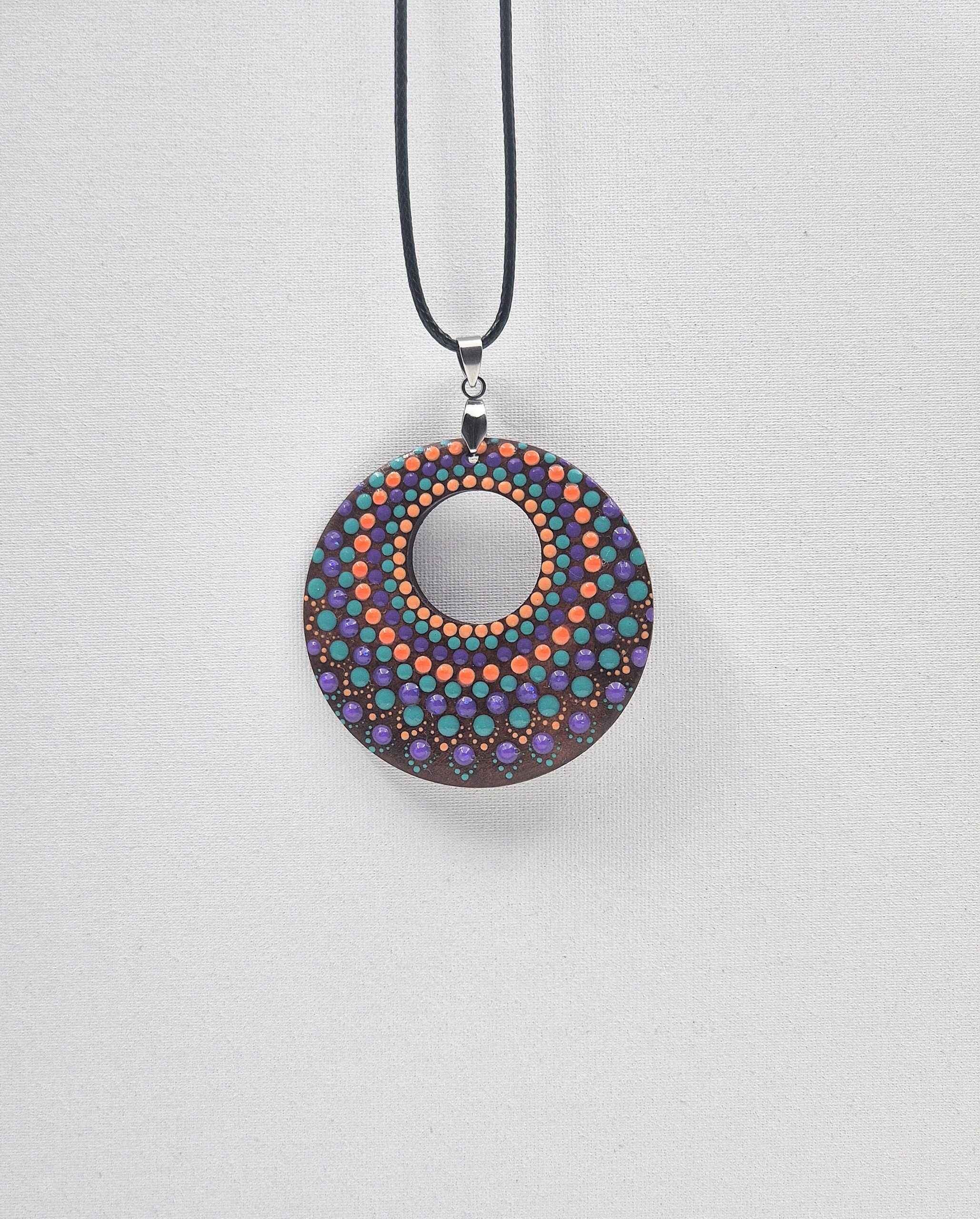 Unikatno ročno delo: Ročno naslikan obesek v tehniki dot painting na naravnem lesu.